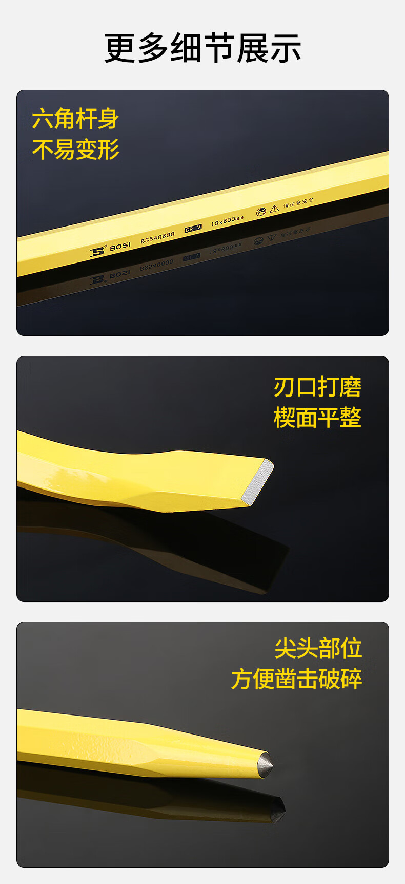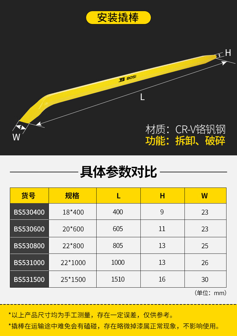 波斯 撬棒 起钉器 小撬棍起重工具不锈钢实心双头 18*400mm BS530400